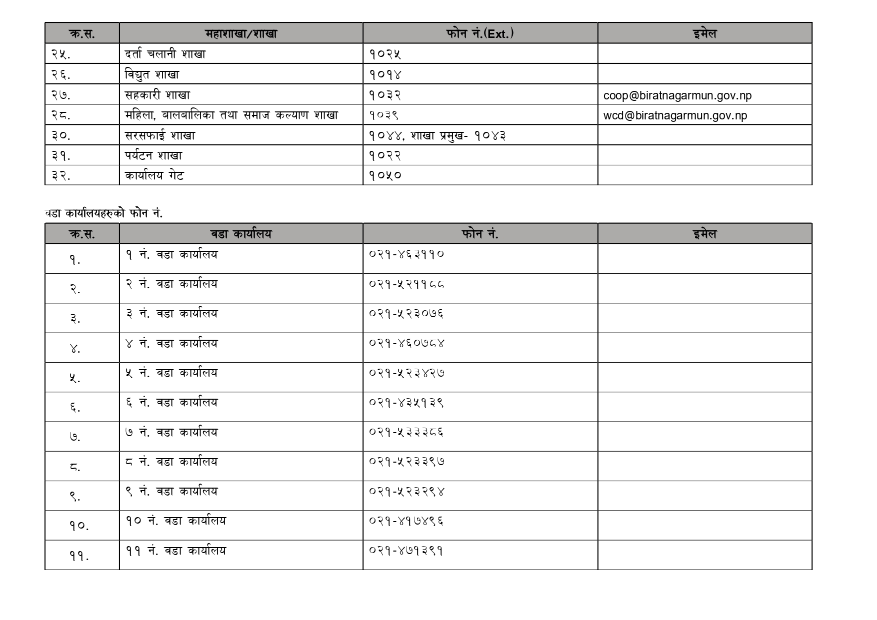 विराटनगर महानगरपालिका, नगर कार्यपालिकाको कार्यालय
