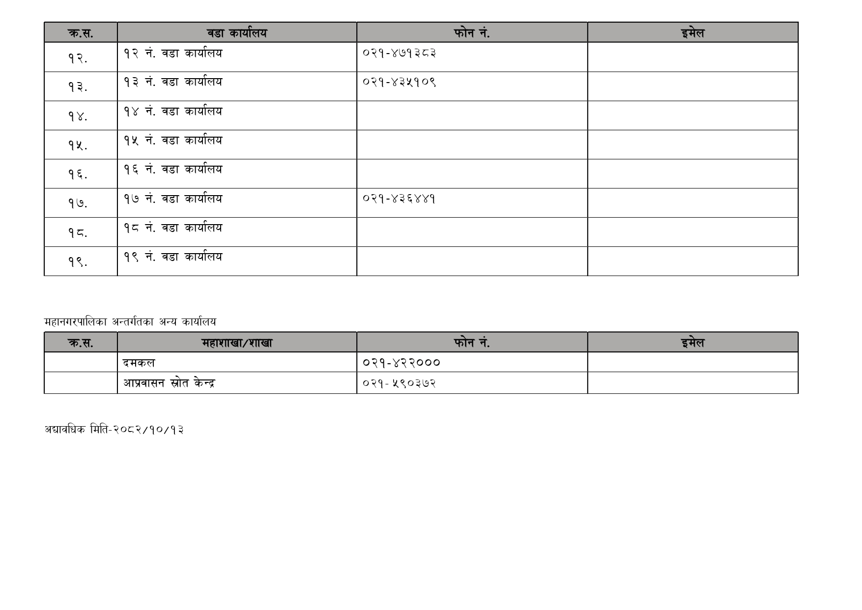 » महाशाखा/शाखाको सम्पर्क विवरण