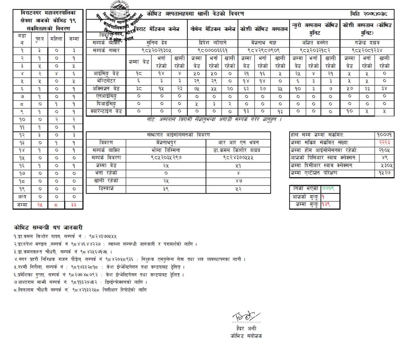 कोभिड-१९ सम्बन्धी विवरण।(अद्यावधिक मिति: २०७८/०३/०८)