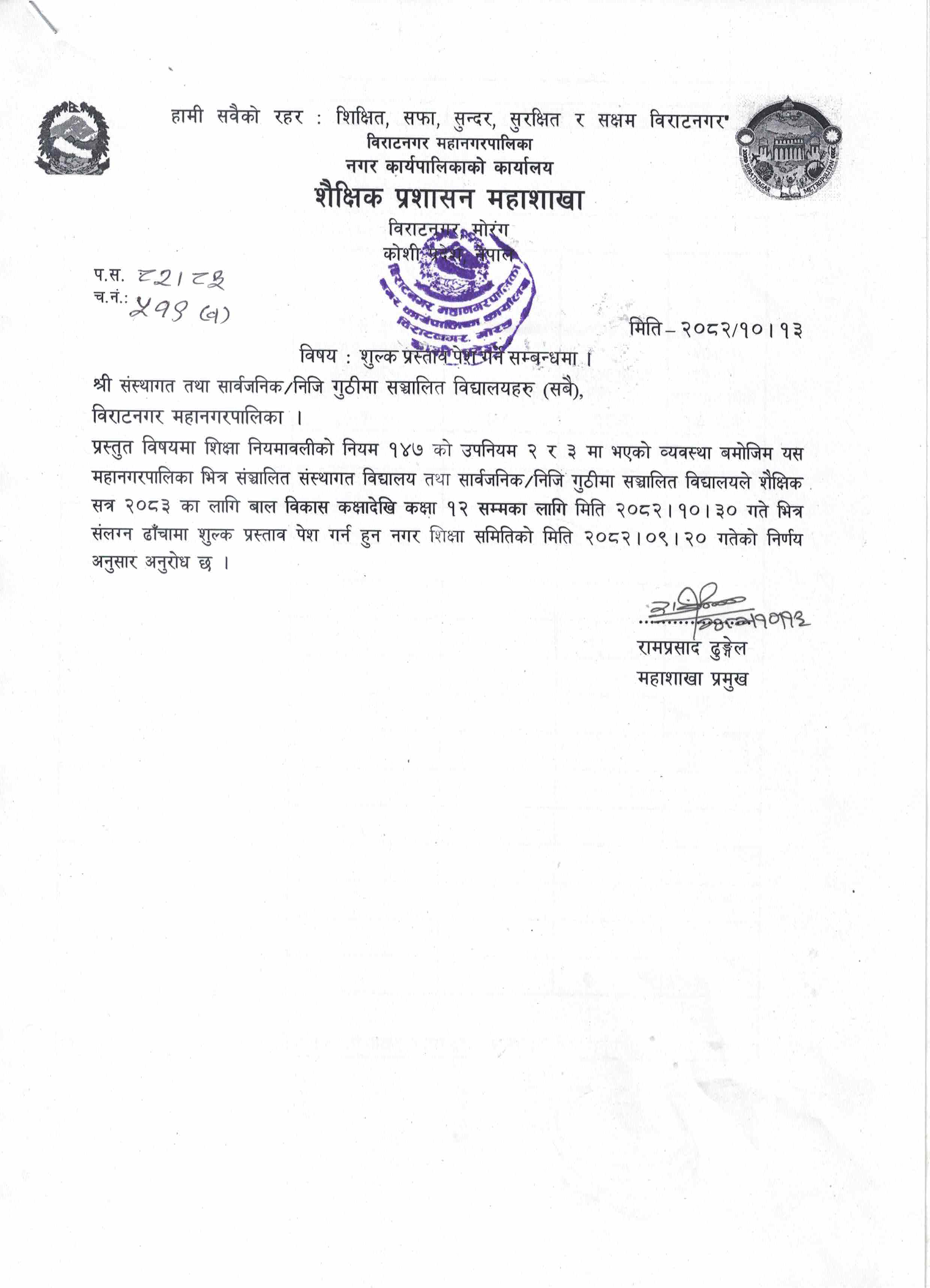 शुल्क प्रस्ताव पेस गर्ने सम्बन्धमा