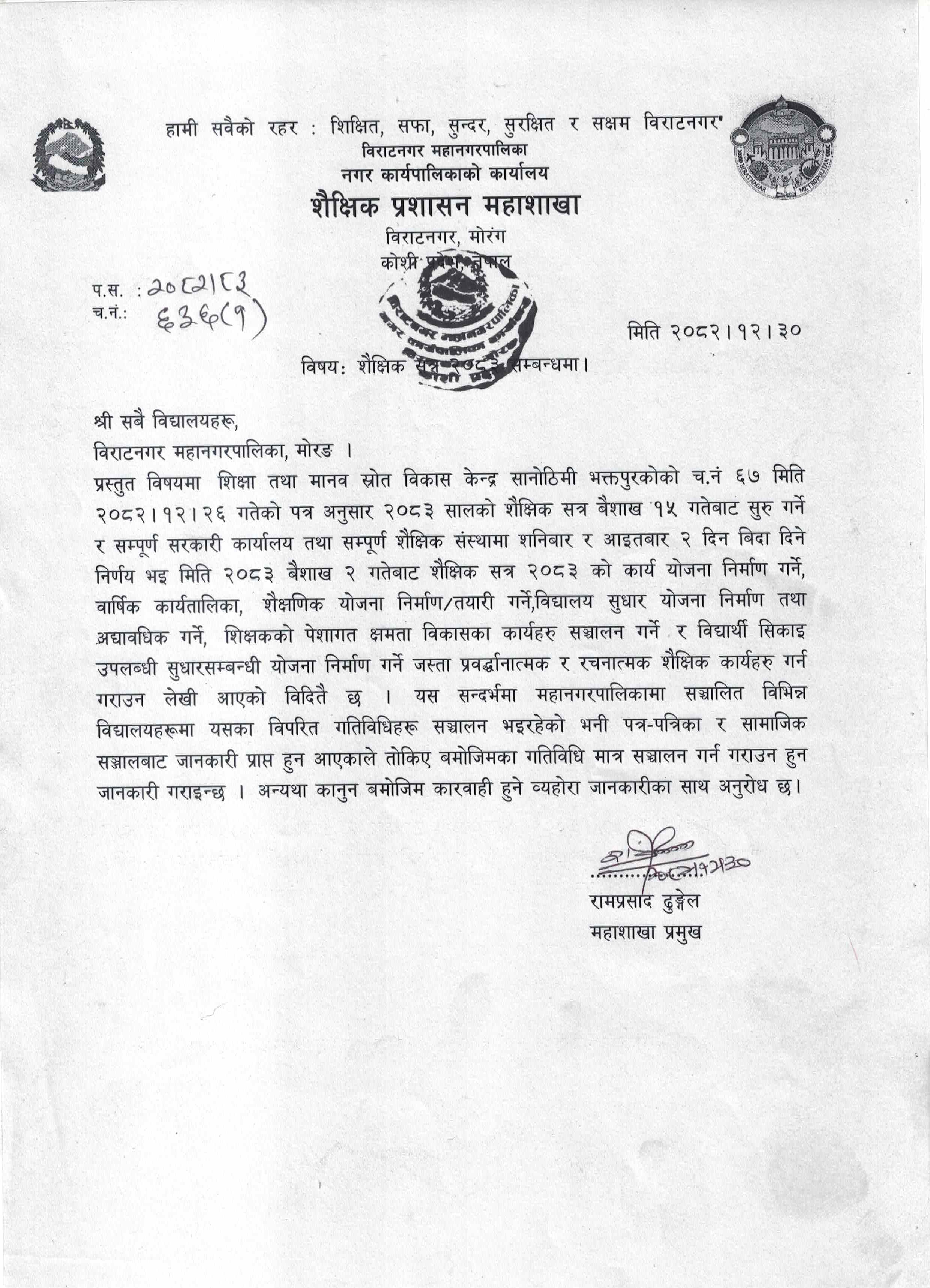 » शैक्षिक सत्र २०८३ सम्बन्धमा