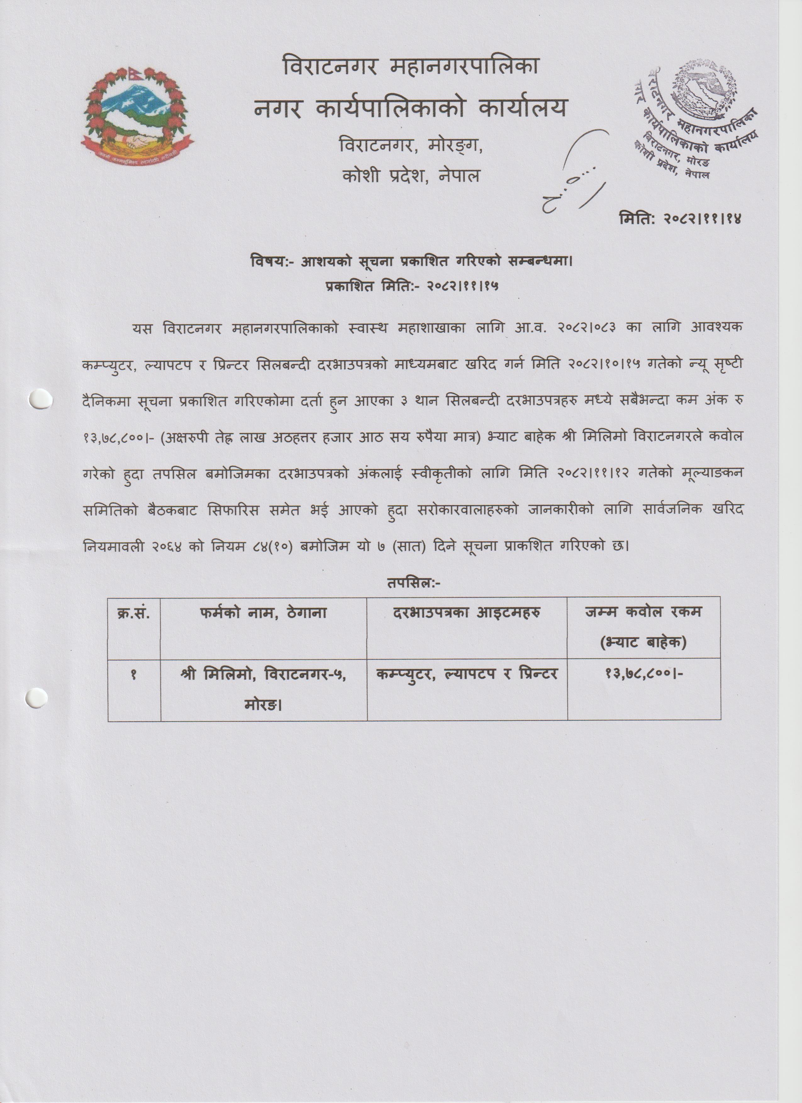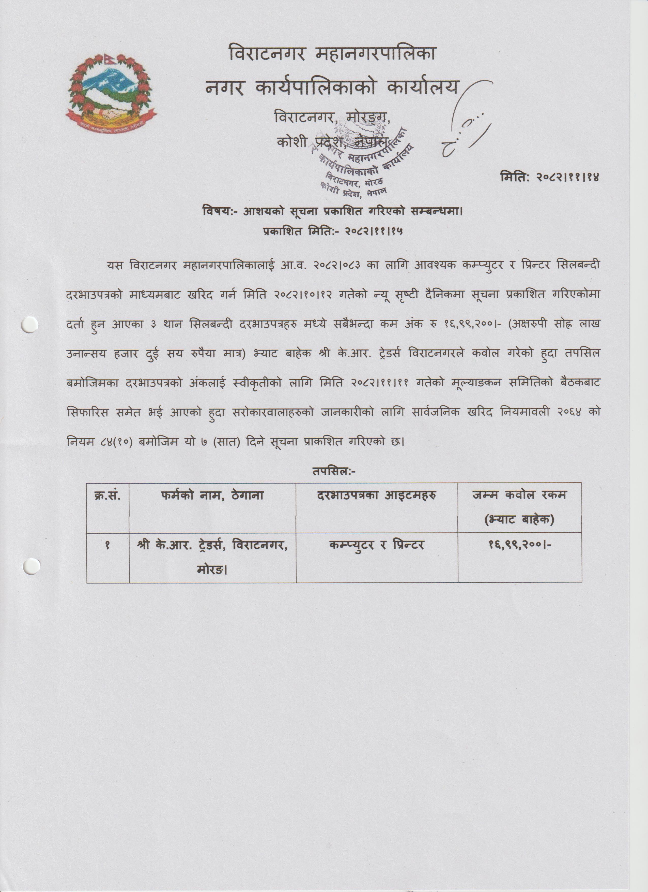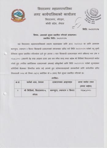 कम्प्युटर र प्रिन्टर खरिदका लागि सिलबन्दी दरभाउपत्र आह्वानको सूचना