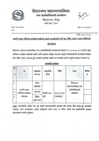 क्षयरोग मुक्त अभियान कार्यक्रम संयोजक पदको अन्तर्वार्ताको लागी पुन: मिति, समय र स्थान तोकिएको सम्बनधमा