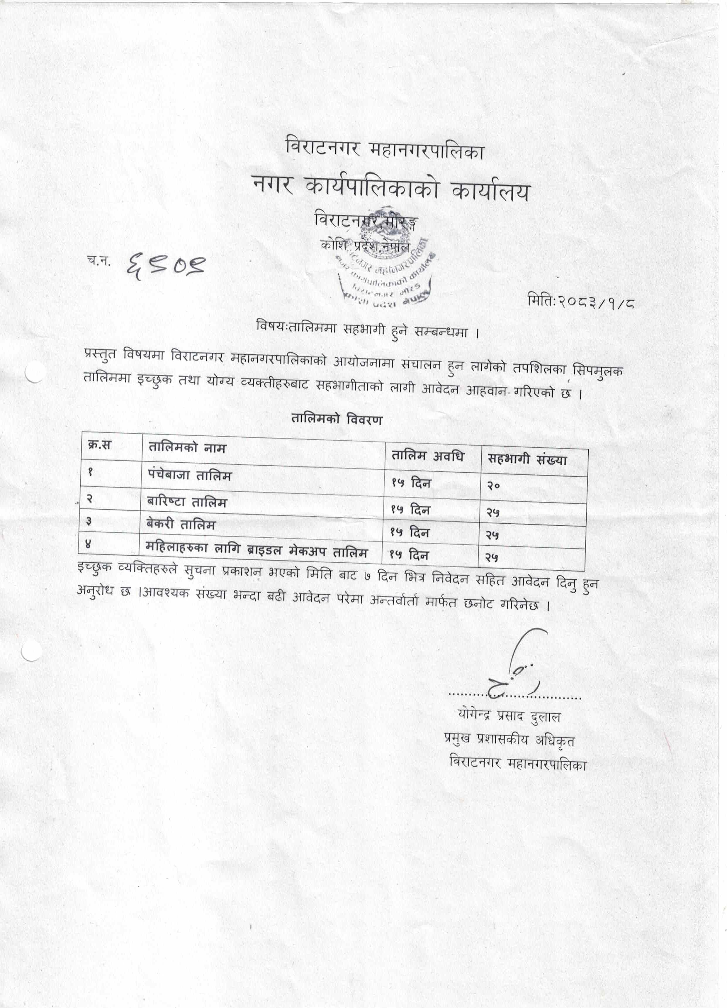 थप जानकारीको लागि सामुदायिक शाखामा सम्पर्क गर्नुहुन अनुरोध छ।