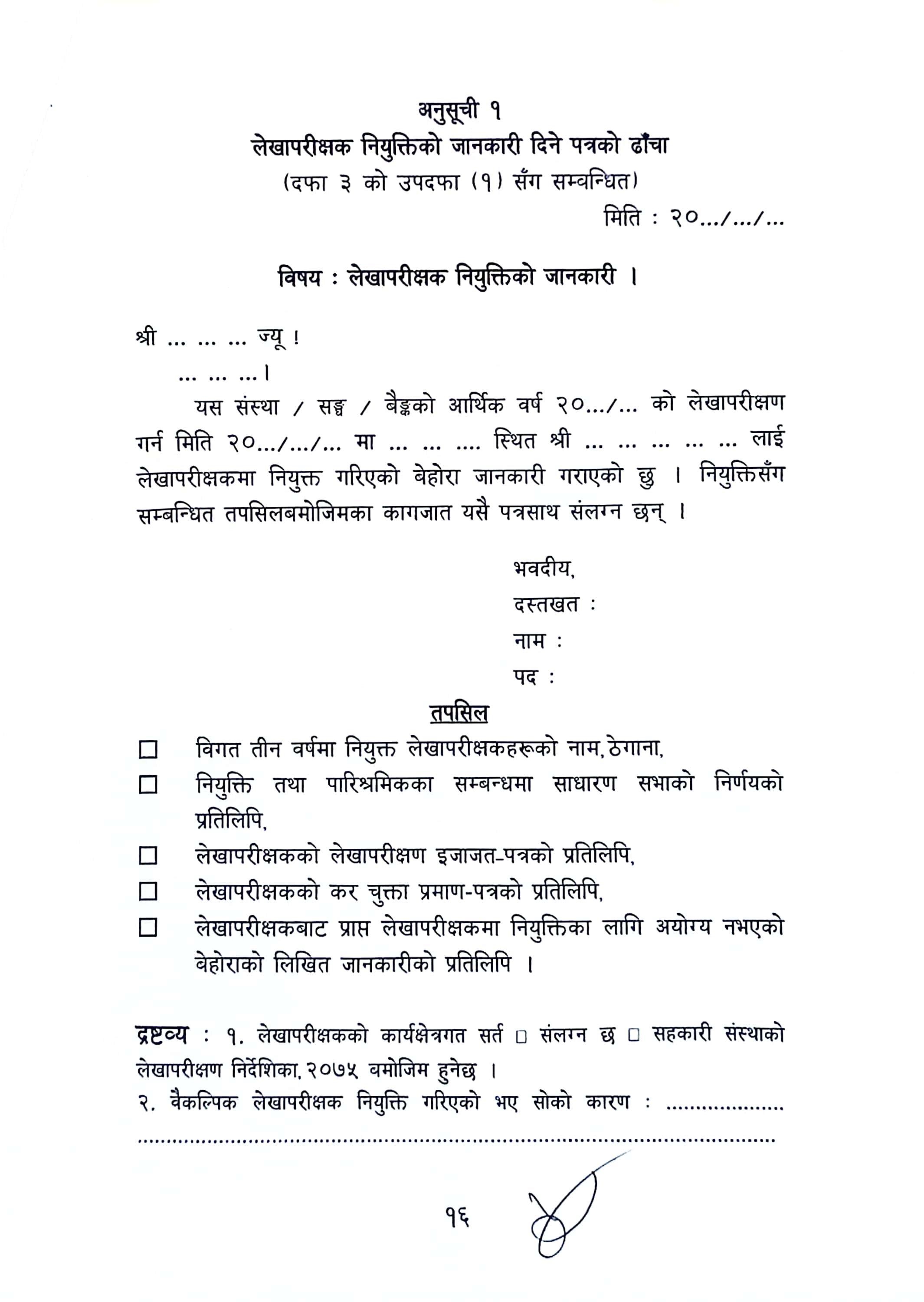 लेखा परीक्षक नियुक्तिको जानकारी पठाउने सम्बन्धमा